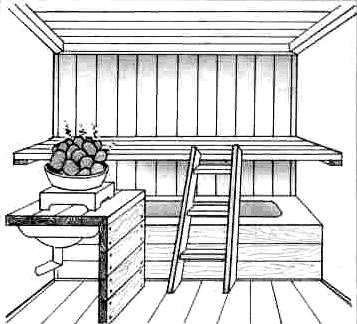Пол бани следует утраивать над уровнем земли на высоте не менее чем 30 см. Дощатые полы настилают из шпунтовых или обрезных досок толщиной 25...37 мм по деревянным лагам. Лаги укладывают на кирпичные столбики сечением 250 х 250 мм, которые устанавливают на песчаном или бетонном подстилающем слое. В парильной делают бетонный подстилающий слой с уклоном для отвода воды и применяют обрезные доски, закрепляя их на лагах с зазором 3...5 мм, чтобы стекала вода.